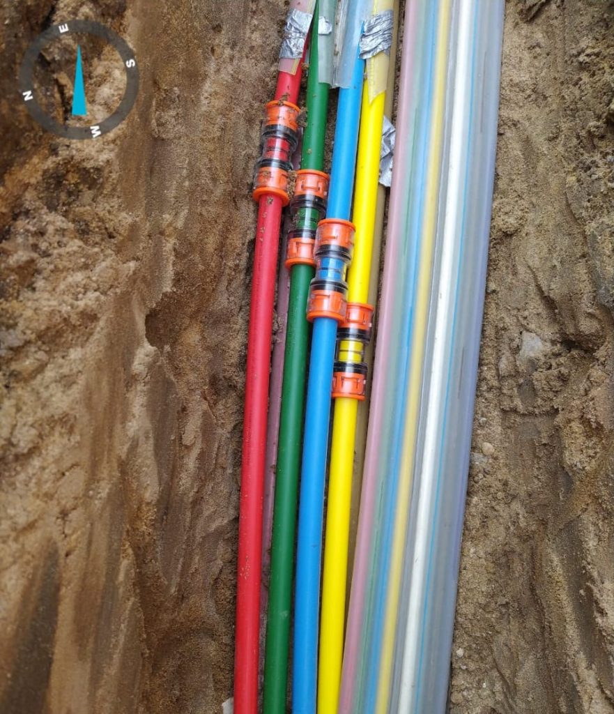 Flatliner bestehen wie die Multiducts aus mehreren Microröhrchen, allerdings sind diese parallel angeordnet und nicht wie bei den Multiducts rund. Die Microröhrchen können in dem Flatliner beliebig kombiniert werden. Unterschiedliche Durchmesser sowie Farben sind möglich. Minimum sind zwei und Maximum 12 Microröhrchen. Der größte Vorteil dieses Systems liegt darin, dass das Glasfaserkabel auf Grund der Zonen nur über kurze Strecken eingeblasen werden muss. Außerdem entstehen bei dem Flatliner durch die Anordnung der Microröhrchen keine Überlängen oder Rohrverspannungen, wie bei den Multiducts. Durch seine flache Anordnung kann der Graben in dem der Flatliner liegt, optimal verfüllt werden. Es entstehen keine Hohlräume die zu Setzungsschäden führen können. Des Weiteren bieten Flatliner auch logistische Vorteile. Sie werden wegen der kurzen Längen in Rohrverbünden auf Paletten geliefert und können daher ohne schweres Gerät bewegt werden. Diese Rohrverbünde lassen sich leichter handhaben und können auch in engen Baustellen einfach verlegt werden.HAUSANSCHLUSS