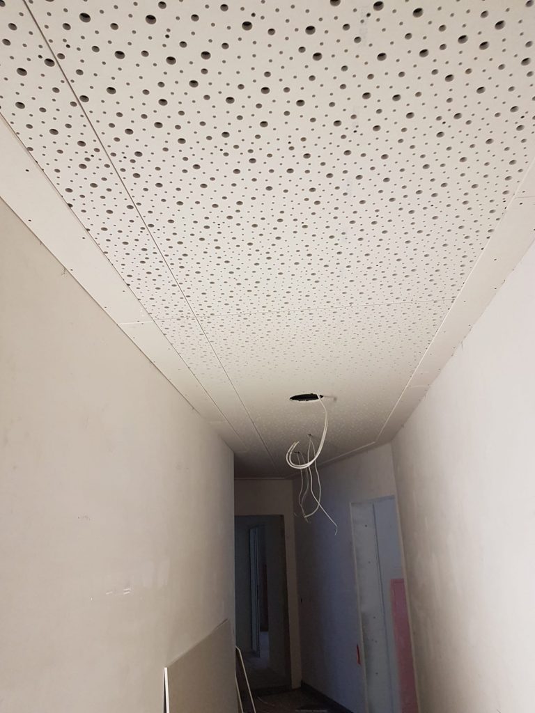 Unter Schallschutz versteht man Maßnahmen zur Limitierung des Schalldruckpegels in schutzbedürftigen Räumen. Schutzbedürftige Räume sind Räumlichkeiten die dem dauerhaften Aufenthalt dienen, wie z. B. Wohn-, Ess-, Schlaf- und Arbeitszimmer. Innerhalb einer Nutzungseinheit kann der Schallschutz durch Maßnahmen gegen die Schallentstehung und durch Schallabsorption erreicht werden. Unter Schallabsorption versteht man die Verminderung des Luftschalls in einem Raum durch geeignete akustische Schallabsorptionssysteme an den Wänden oder an den Decken. Hierbei wird die „Halligkeit“ des Raumes vermindert und die Sprachverständlichkeit erhöht.BRANDSCHUTZ